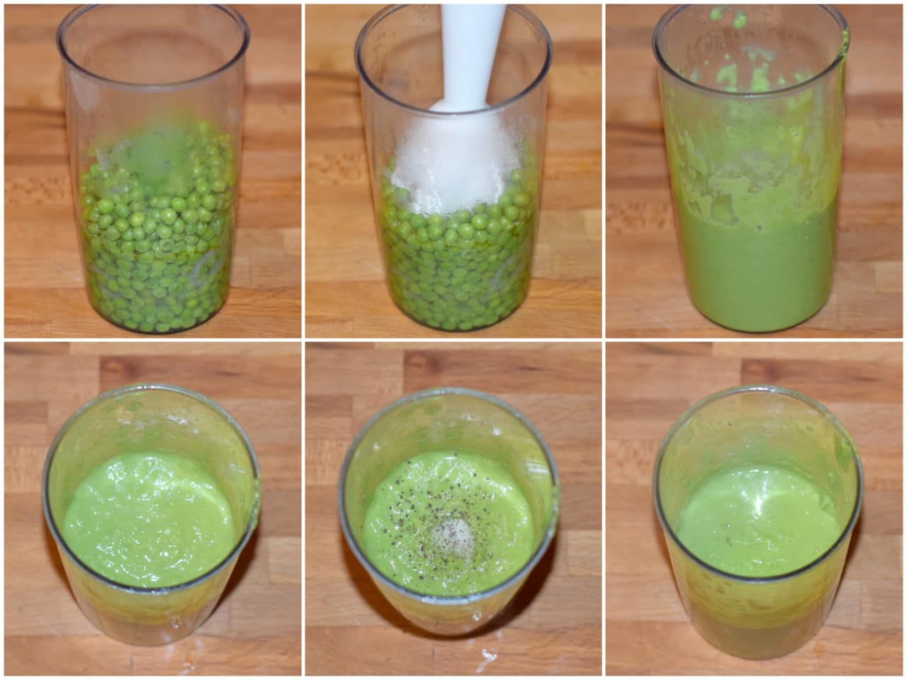 Quando i piselli saranno cotti frullateli e aggiustate di sale e pepe.