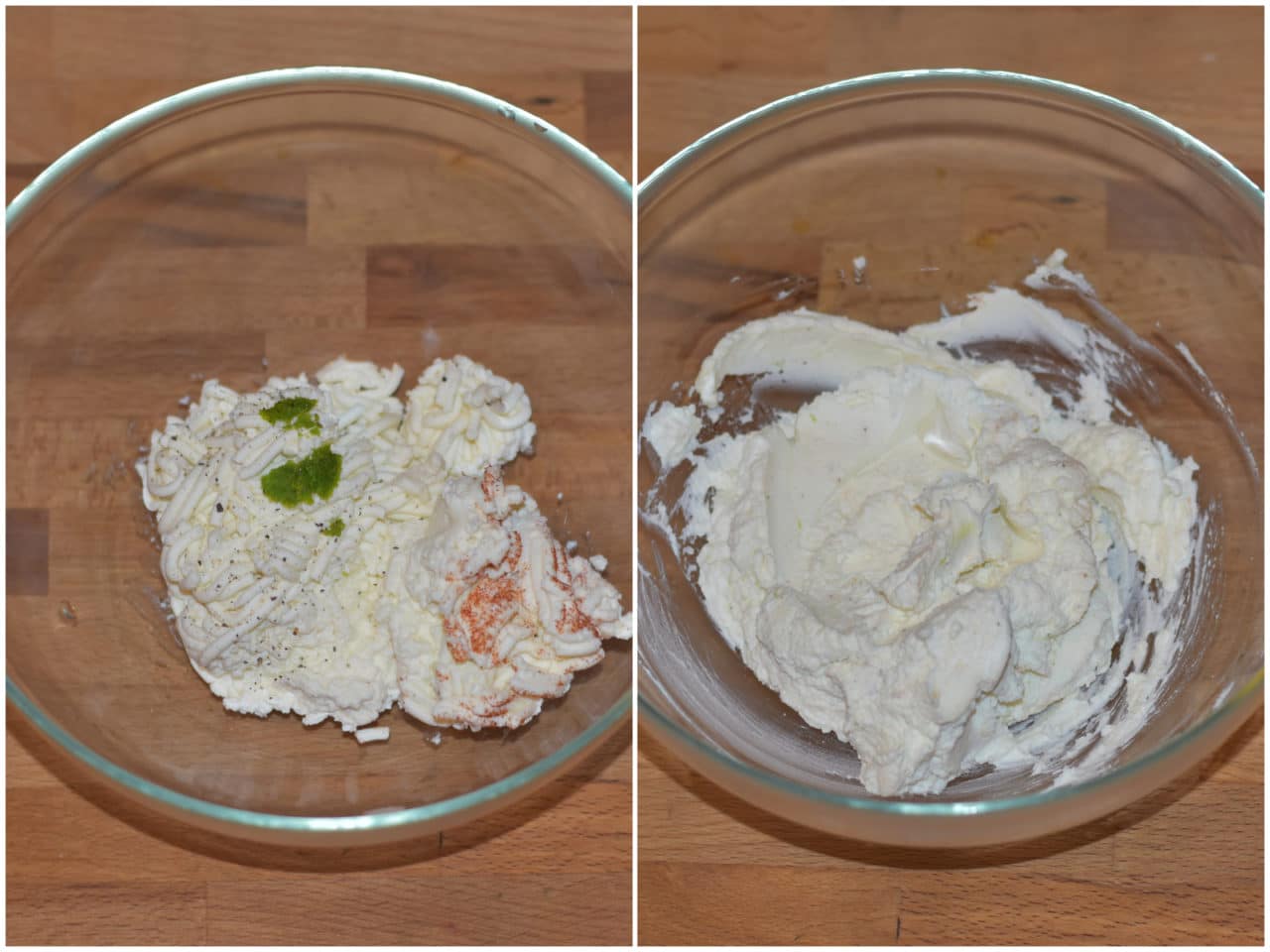 Passate ora al ripieno: unite in una ciotola ricotta, buccia di lime grattugiata, sale, pepe e paprica e amalgamate.