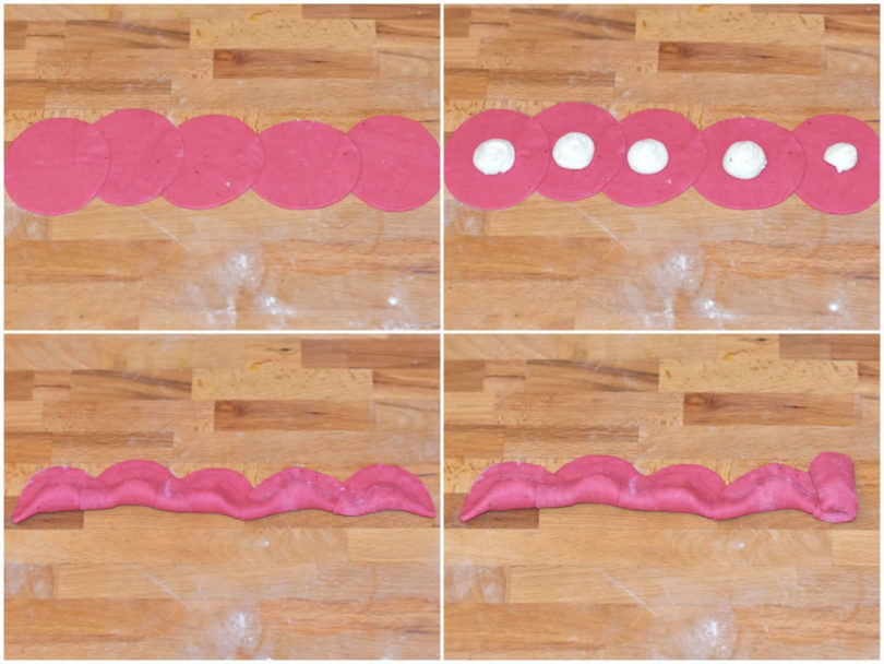 A questo punto arrotolate i ravioli su se stessi per formare una rosa.