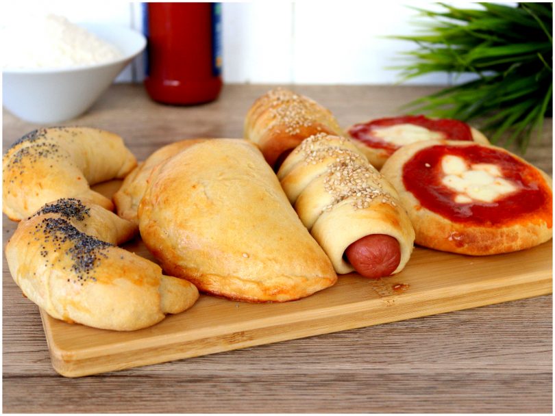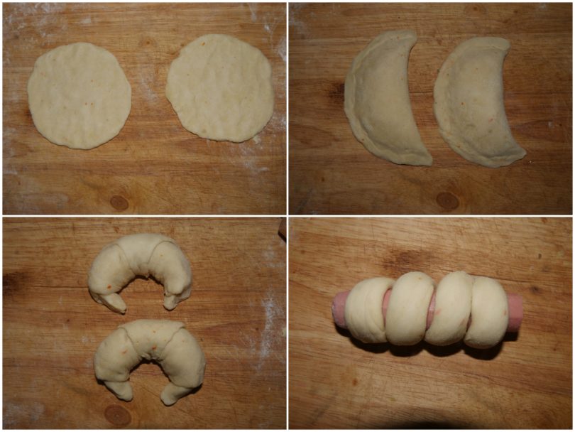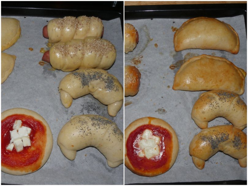 Formate le forme di Rosticceria siciliana che preferite( io ho fatto dei rollò ai wurstel, delle pizzette, dei calzoncini e dei cornetti) e fate lievitare ancora per un'ora.