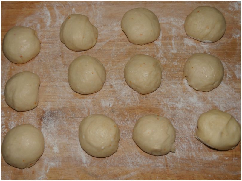 Dividete poi l'impasto in pezzi più piccoli e formate delle palline del peso di circa 80 grammi.