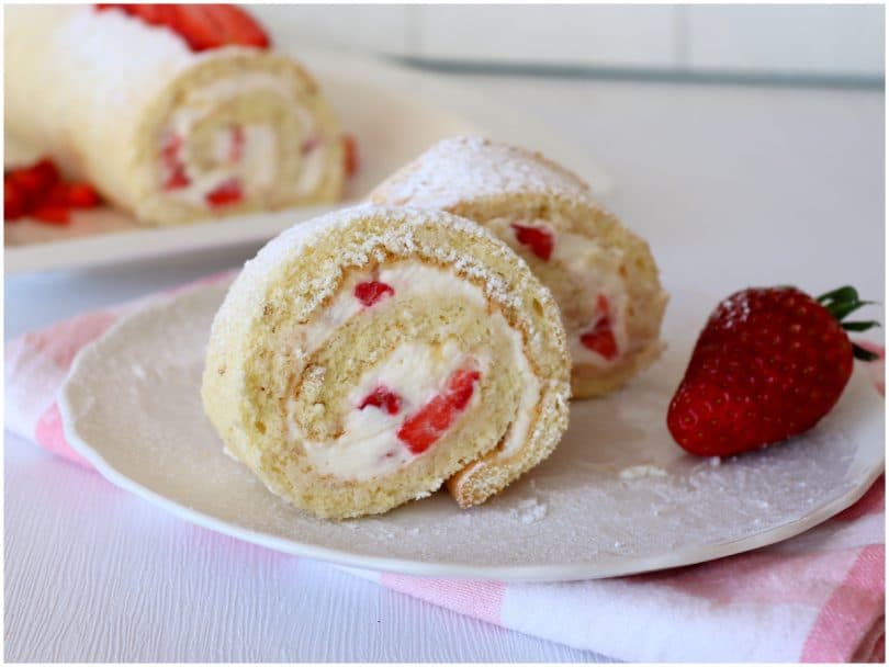 Il rotolo alle fragole è una ricetta estiva molto apprezzata a casa mia perchè è velocissimo da fare e molto semplice e soprattutto perchè adoriamo i dolci con le fragole. Unica accortezza che dovete avere è regolarvi con lo zucchero al momento perchè tutto dipende dalla dolcezza delle fragole e dal tipo di panna che intendete utilizzare. Se lo provate fatemi sapere ;)