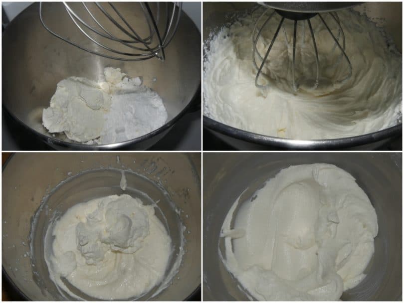 In una terrina lavorare la ricotta con lo zucchero e a parte montare la panna. Incorporare la panna montata alla ricotta.