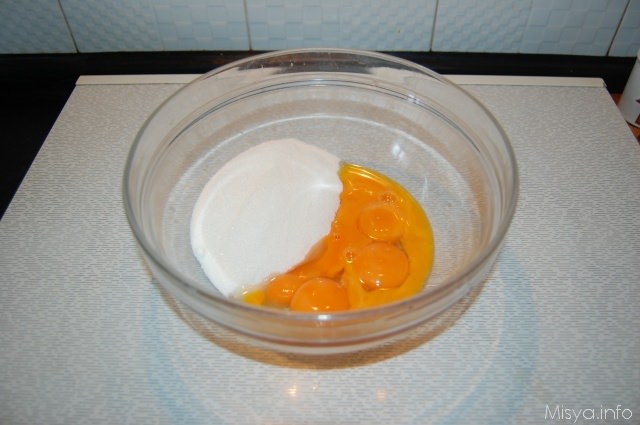 Separare i tuorli dagli albumi e montare questi ultimi a neve ben ferma. In una ciotola montare i tuorli con lo zucchero fino a renderli gonfi e spumosi