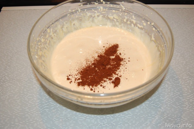 Aggiungere ora la vanillina e il cacao continuando a montare