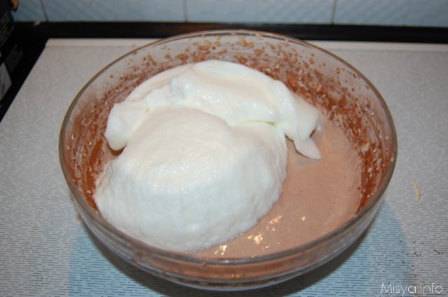 Incorporare delicatamente all'impasto gli albumi montati mescolando con un cucchiaio di legno.