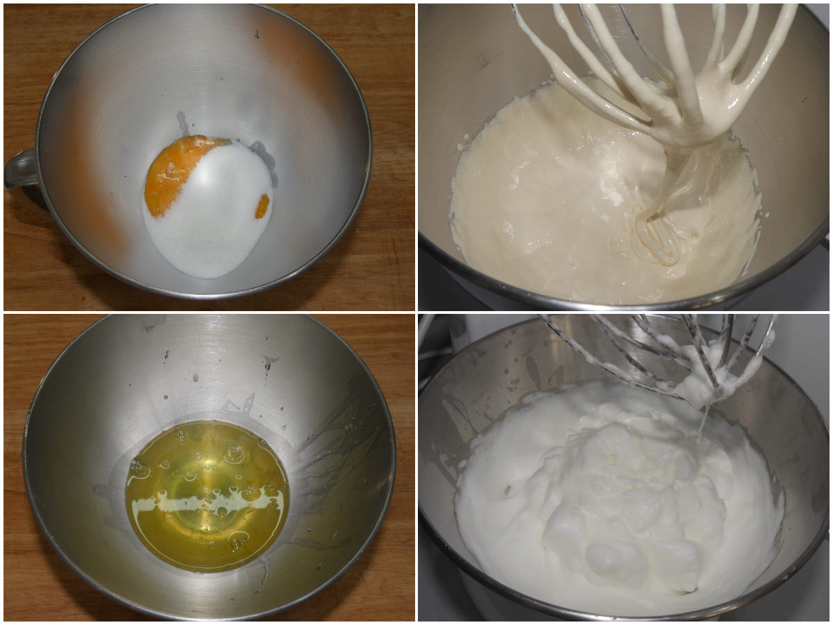 A parte, montate i tuorli con lo zucchero per almeno 10 minuti, fino ad ottenere un composto chiaro e spumoso.