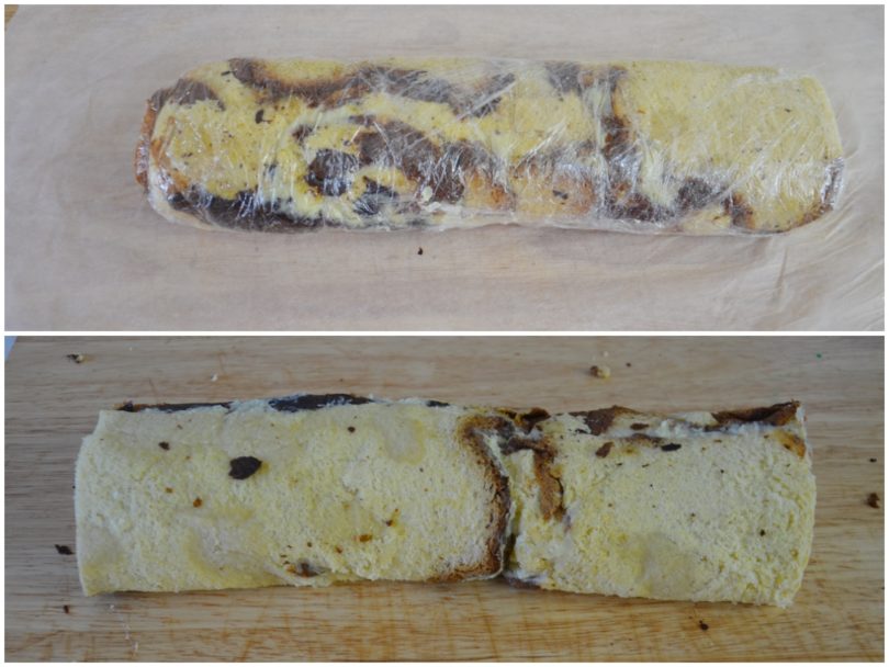 Una volta formato il rotolo, bagnate un po’ la superficie con la bagna avanzata, poi avvolgetelo nella pellicola e mettete in frigo a rassodare per un'ora.
