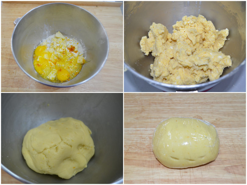 Aggiungete burro a tocchetti e buccia di limone e lavorate velocemente con le dita fino a ottenere un composto sabbioso.