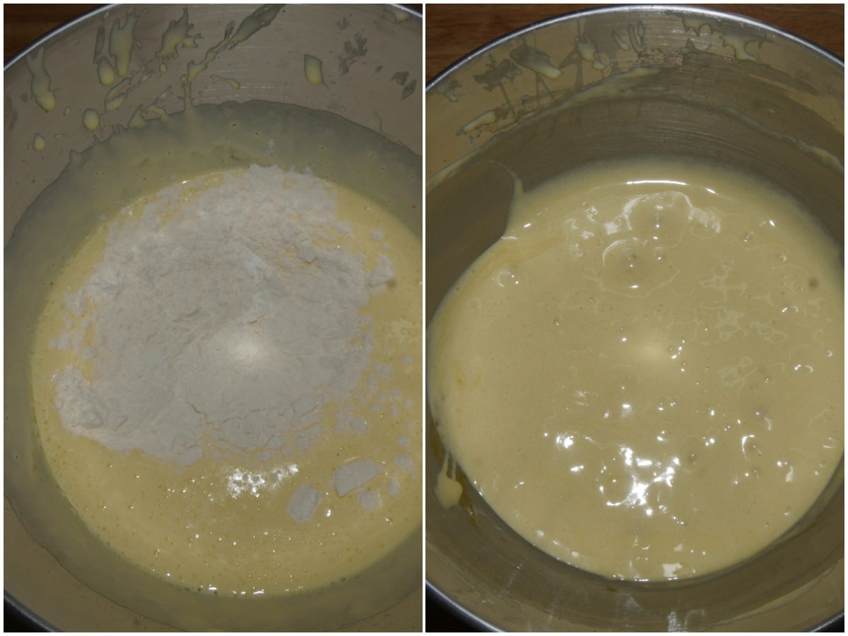Aggiungete anche farina e lievito setacciati e amalgamate bene.