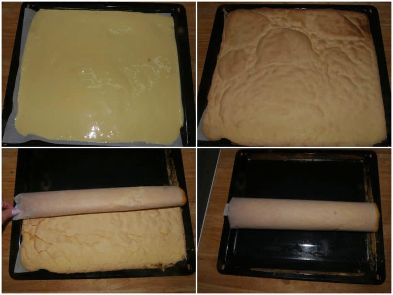 Sfornate e avvolgete subito la pasta biscotto su se stessa, con tutta la carta forno (in modo che non si attacchi), quindi lasciate raffreddare così