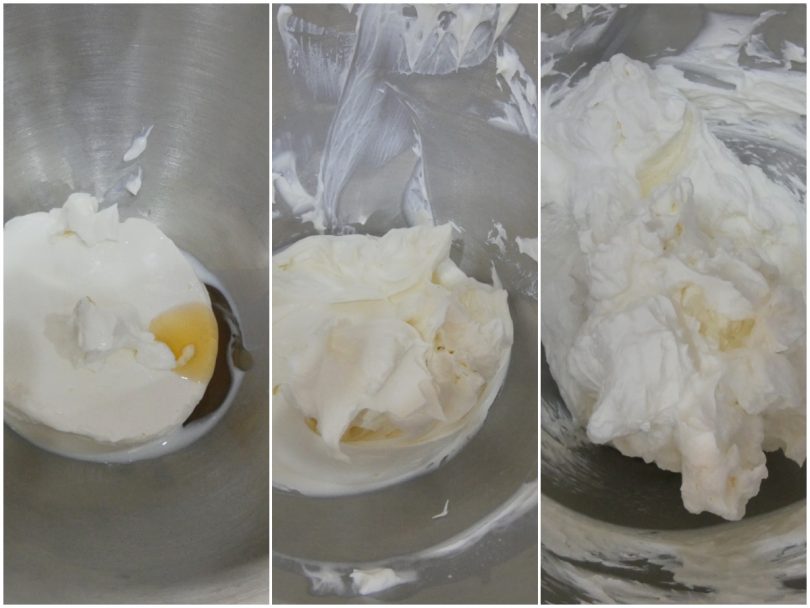 Quando la pasta biscotto sarà completamente fredda, montate il mascarpone con miele e zucchero, quindi incorporate delicatamente la panna montata (che avrete precedentemente montato a parte, ben fredda di frigo).