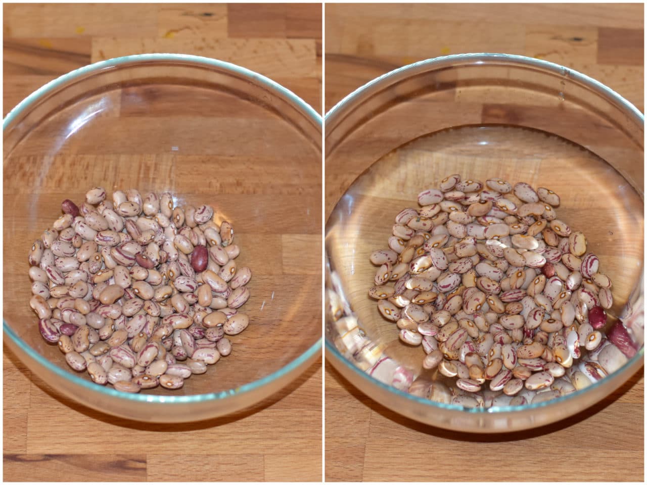 La sera prima mettete a bagno i fagioli con abbondante acqua fredda e lasciateli riposare per almeno 12 ore.