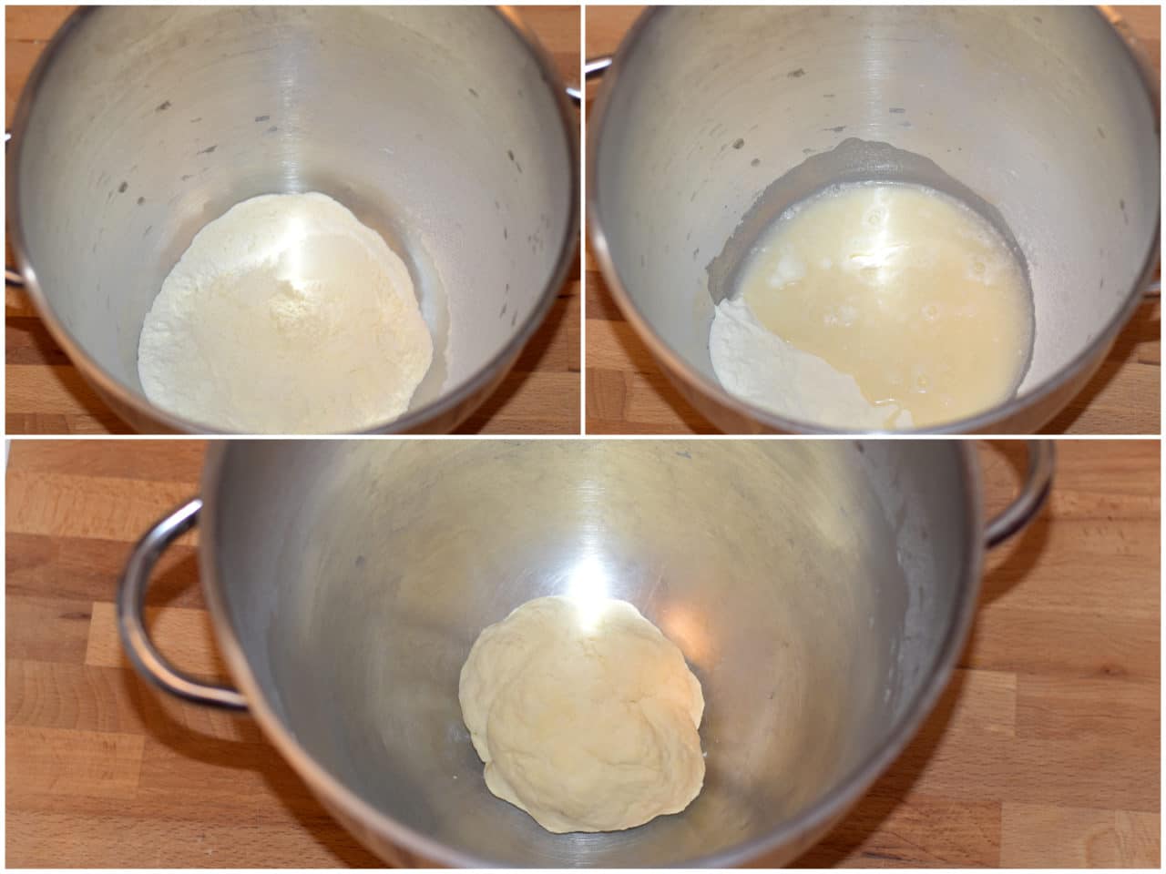 Il giorno dopo preparate innanzitutto l'impasto per la pasta: unite acqua e semola in una ciotola e lavorate velocemente fino ad ottenere un panetto, avvolgetelo con pellicola per alimenti e lasciate riposare a temperatura ambiente per almeno 30 minuti.
