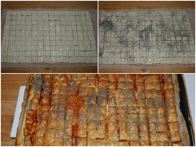 Finita la cottura, sfornate e ripassate subito la rotella sui segni dei tagli fatti prima, in modo separare i quadratini.