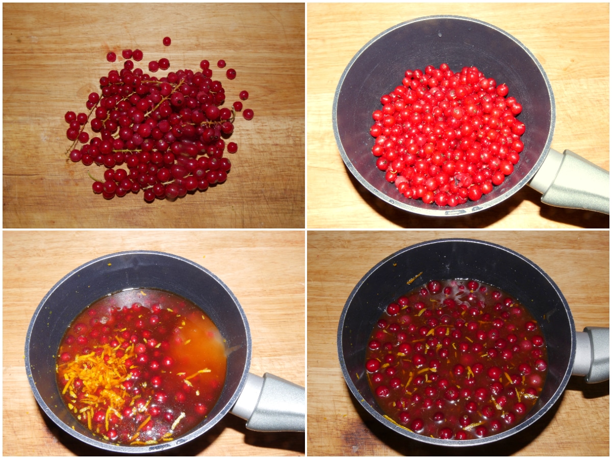Lavate i mirtilli, mondateli e metteteli in un pentolino con zucchero, miele, porto e succo e buccia di arancia.