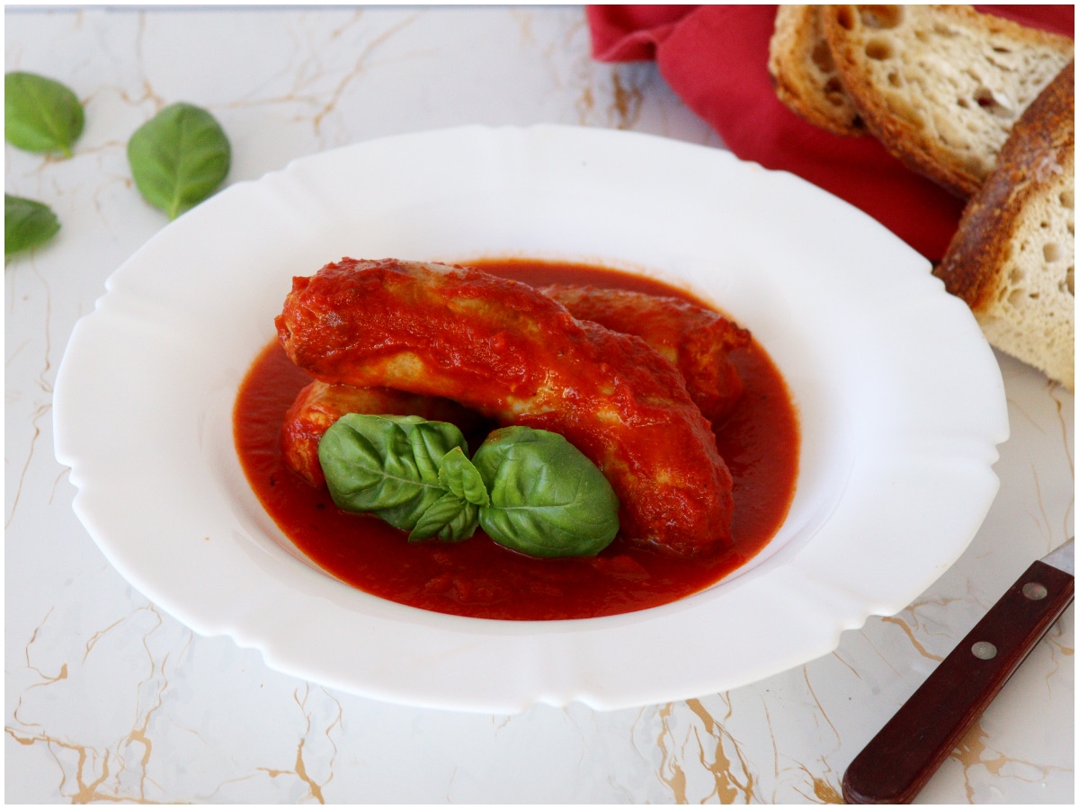 La salsiccia al sugo è pronta, non vi resta che aggiustare di sale e gustarvela!