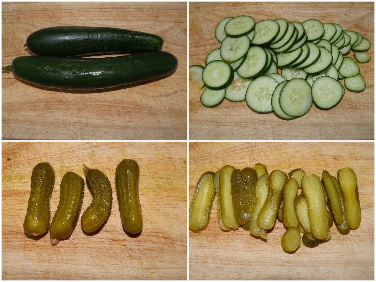Tagliate anche i cetriolini a fettine (se non vi piacciono i sottaceti, usate solo il cetriolo).