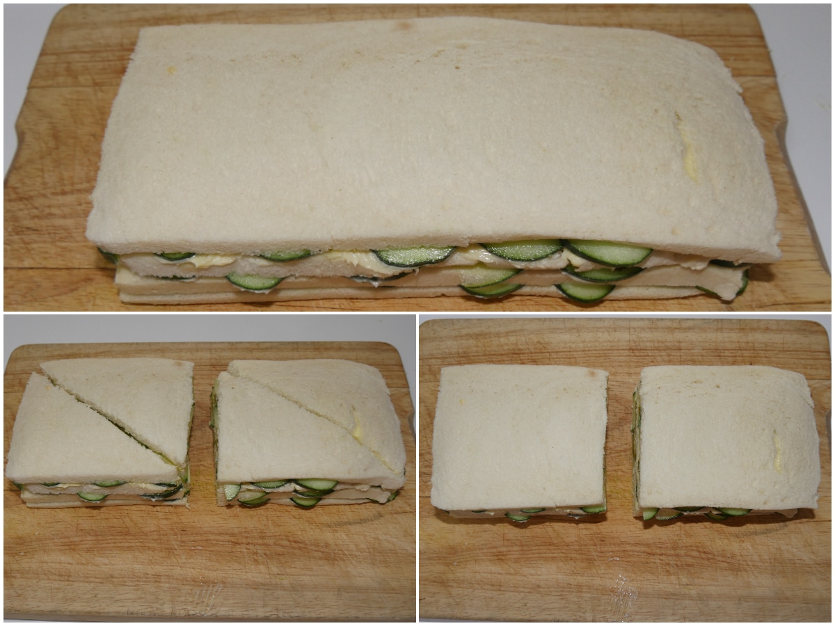 I sandwich al cetriolo sono pronti: sigillateli con uno stuzzicadenti e serviteli (oppure conservateli in frigo coperti con un canovaccio pulito e leggermente inumidito fino al momento di servirli).