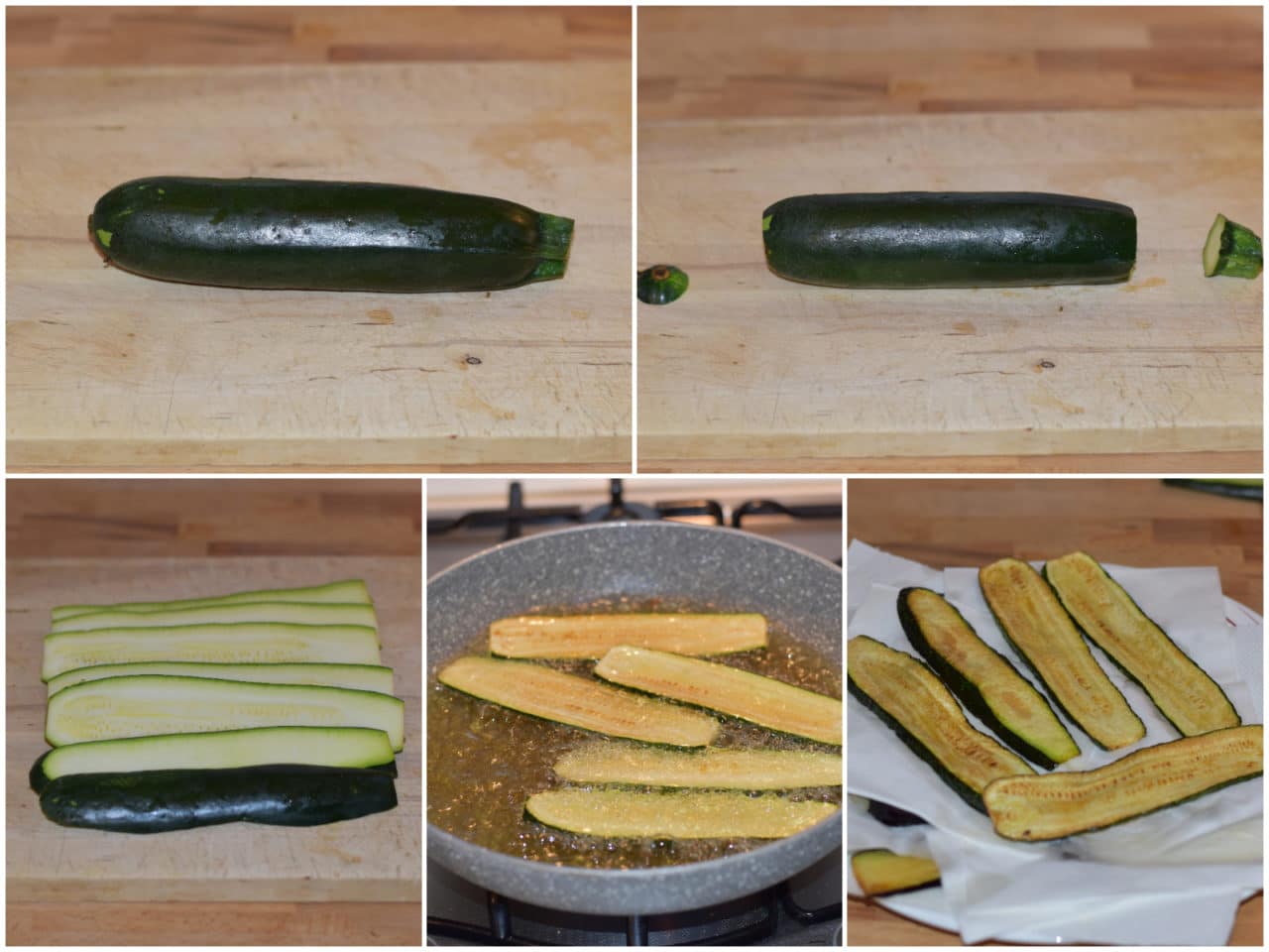 Innanzitutto mondate melanzane e zucchine, tagliatele a fettine sottili e friggetele in abbondante olio di semi, lasciandole poi asciugare e intiepidire su carta da cucina.