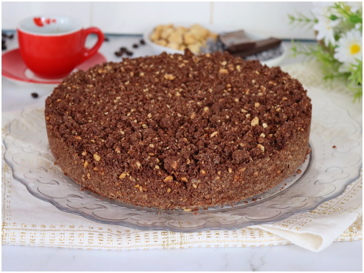 La sbriciolata al caffè e cioccolato è un dolce goloso e facile da fare, perfetto per un momento di comfort durante uno di questi lunghi pomeriggi uggiosi... o anche come dessert a fine pasto, naturalmente ;) Volendo potete usare solo la base al cacao e nocciole e optare per una farcitura diversa, ma vi assicuro che questa crema al caffè ci sta davvero benissimo!