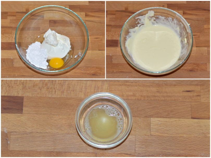 Mescolate in una ciotola il mascarpone con uovo e zucchero; a parte, preparate il succo d'arancia.