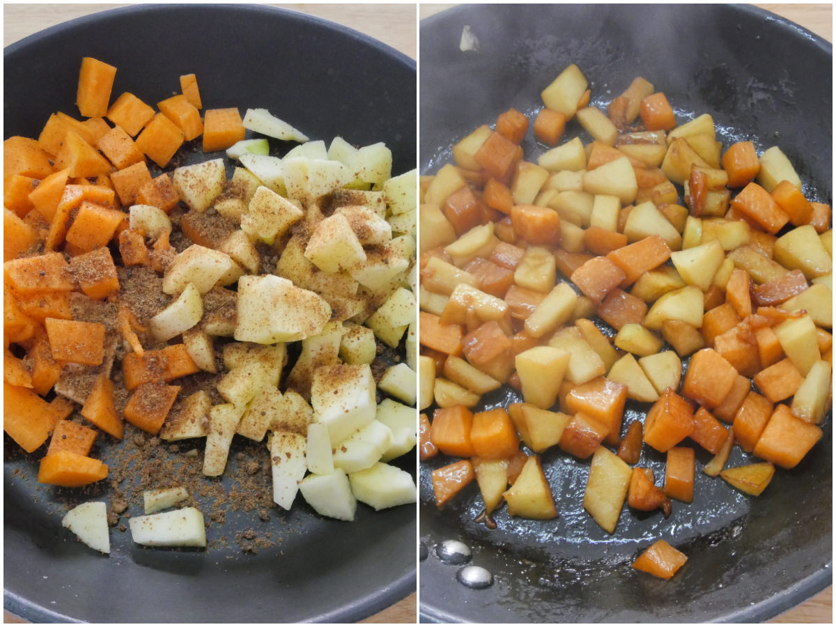 Cuocete quindi per almeno 10 minuti (o finché non diventeranno morbide e leggermente caramellate) in una padella antiaderente con burro e zucchero di canna.