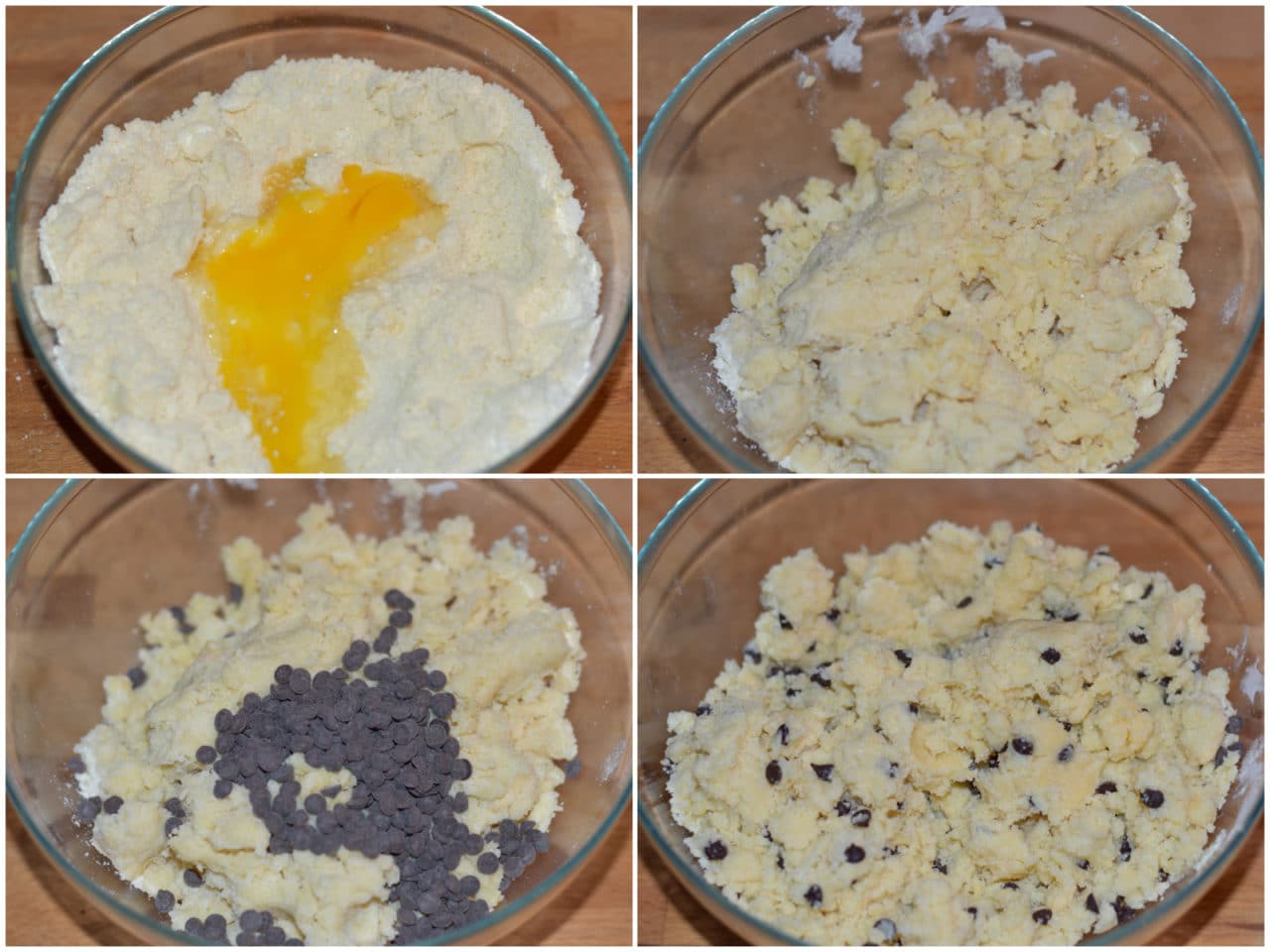 Infine incorporate le gocce di cioccolato, velocemente, in modo da non farle sciogliere con il calore delle mani.