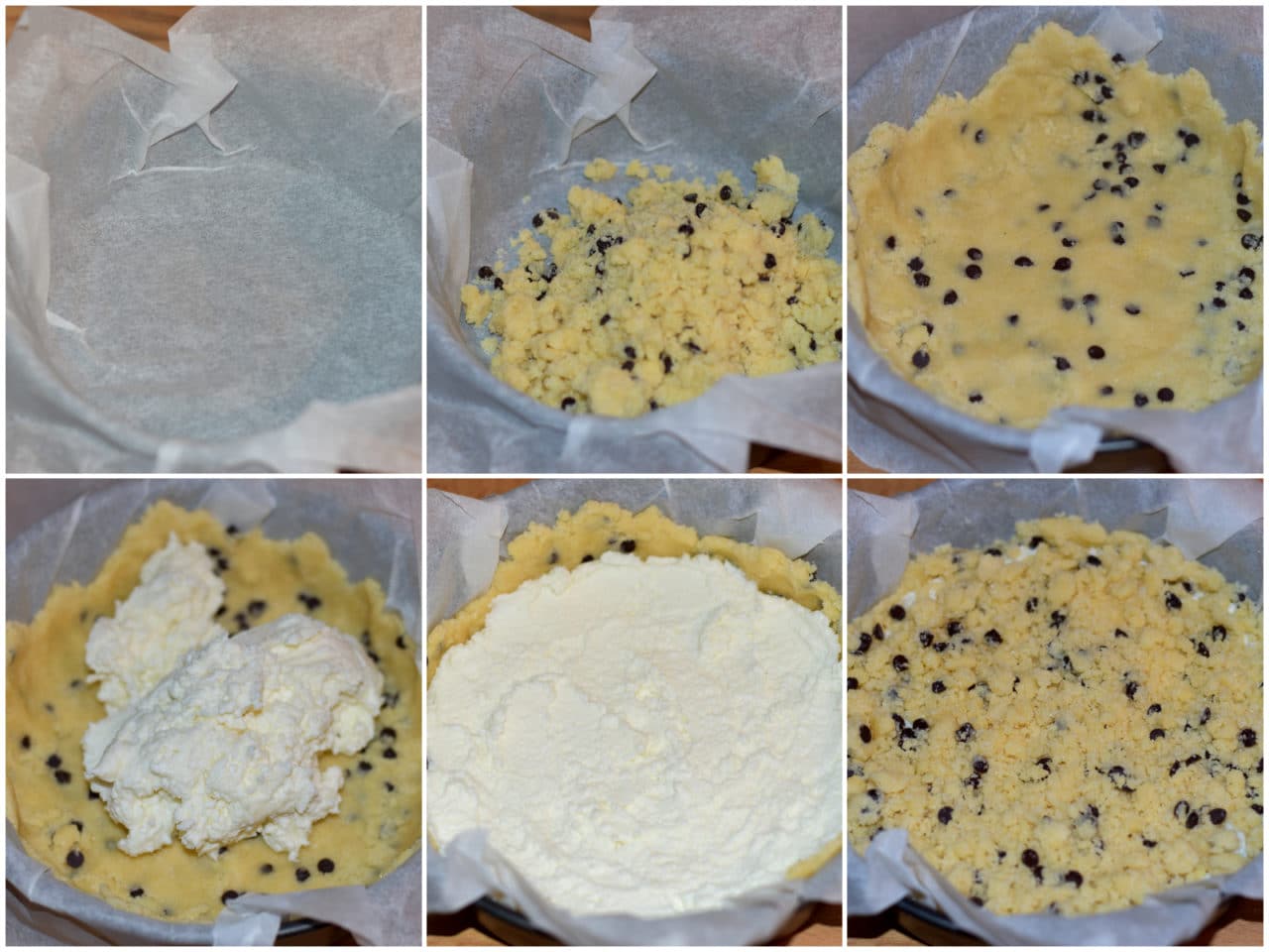 Aggiungete la ricotta e livellate bene la superficie, quindi completate con la frolla rimanente, ricoprendo l'intera superficie.