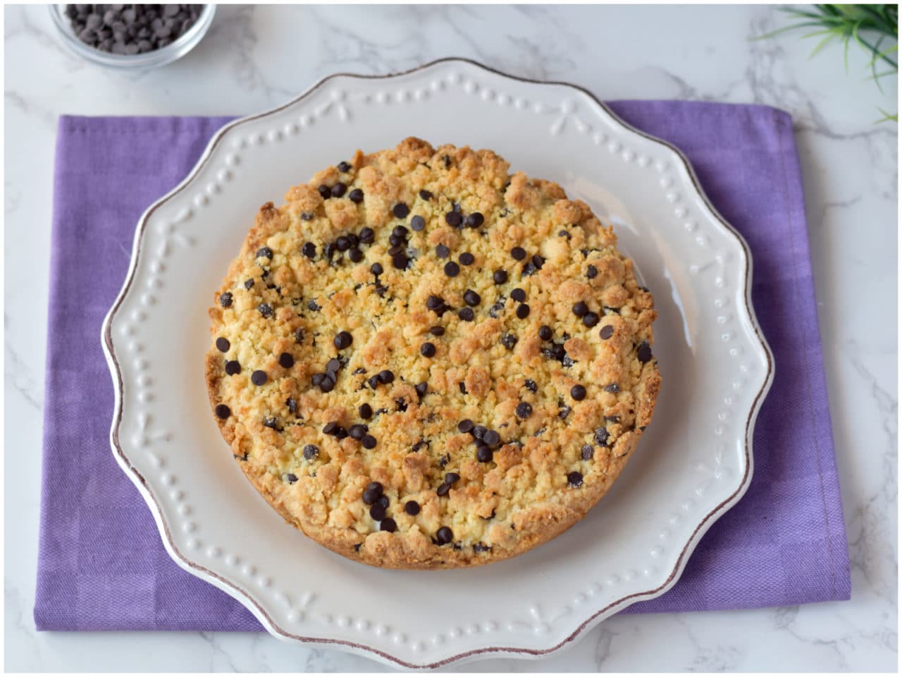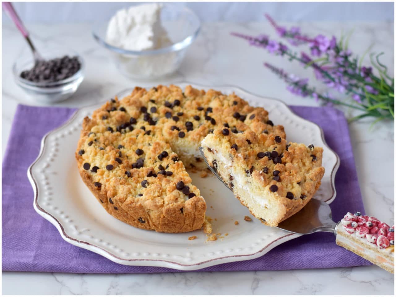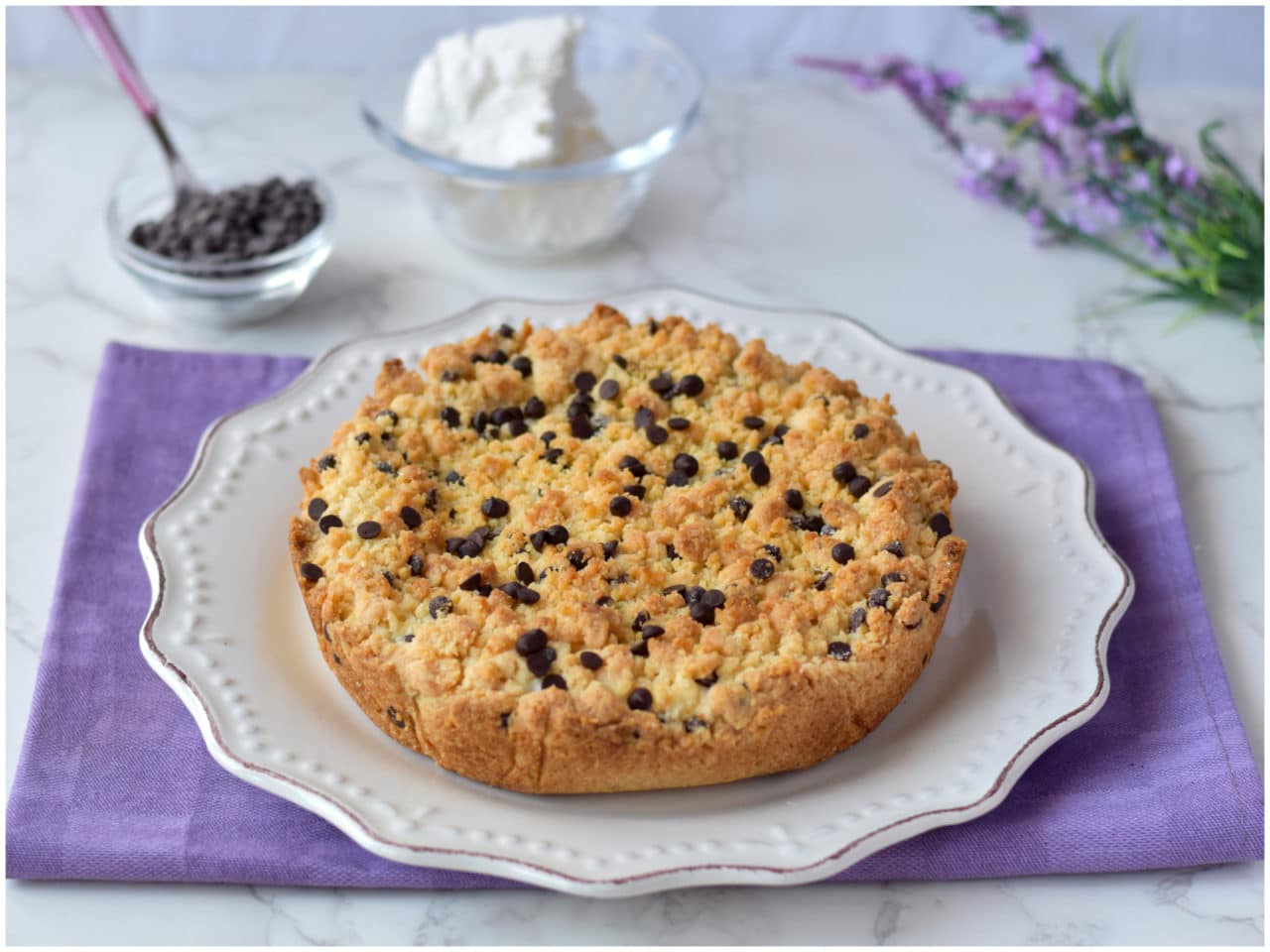 La sbriciolata ricotta e cioccolato è pronta, lasciatela raffreddare completamente prima di sformarla e servirla.