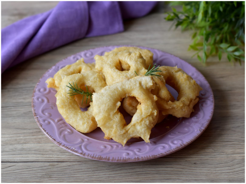 Friggetene poche per volta in olio caldo, mantenendo aperti i buchi con i manici di 2 cucchiai di legno, quindi scolate su carta da cucina.