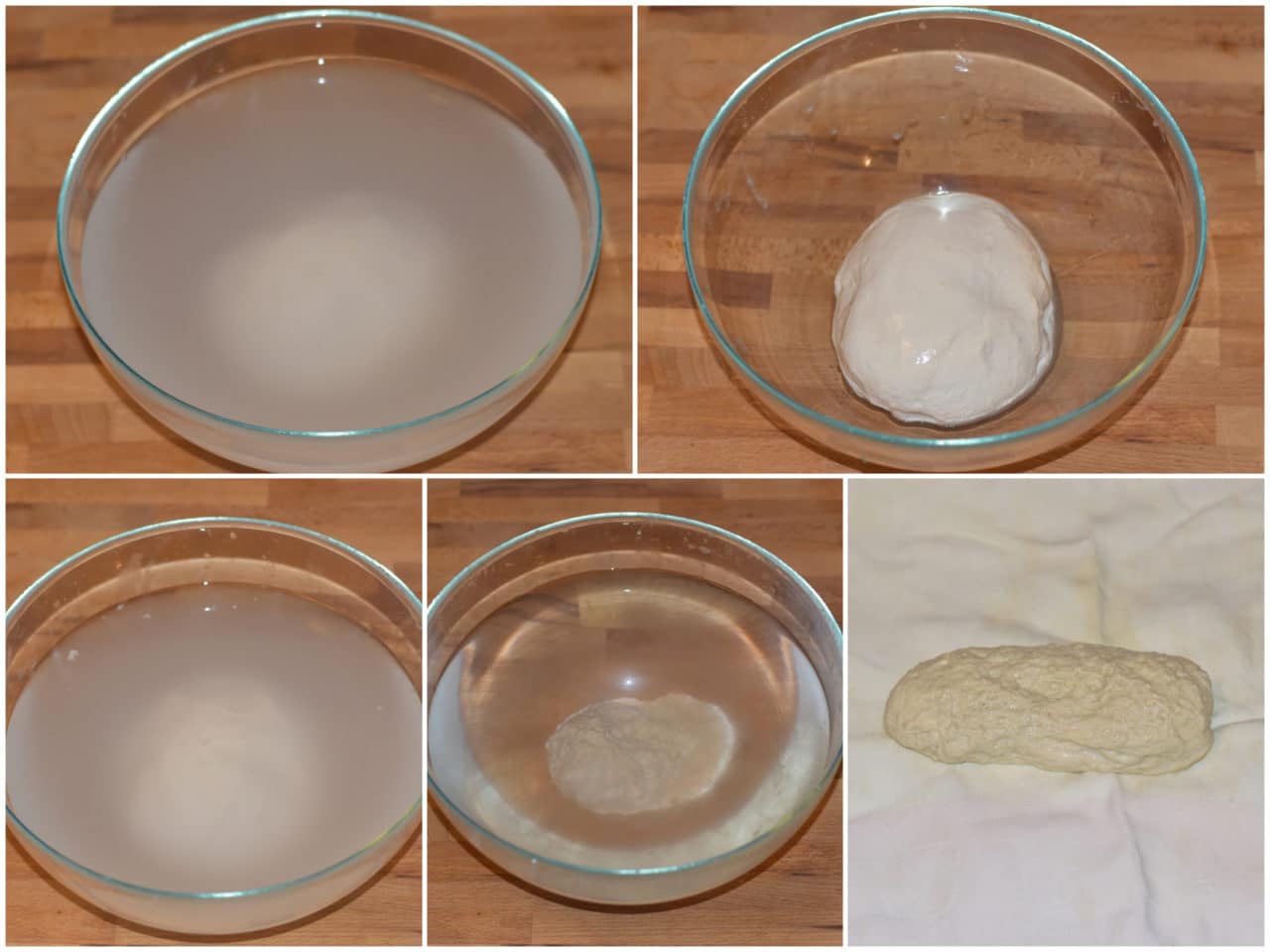 Iniziate la fase dei lavaggi: massaggiate il panetto nell'acqua, continuando finché l'acqua non risulterà bianchiccia.