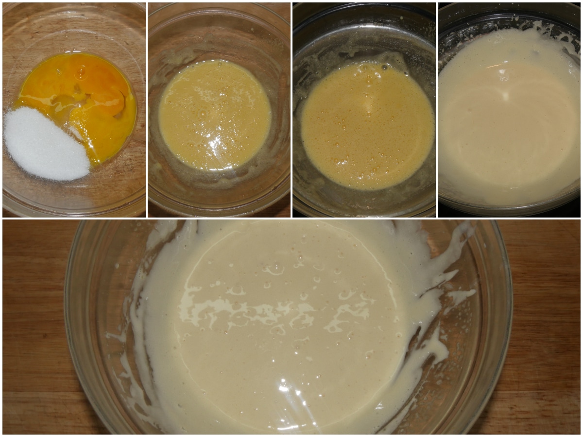 Quando il composto sarà già omogeneo crema posizionate il pentolino su una pentola più grande riempiendo di acqua fino a 1/3 del contenitore più piccolo (quello con dentro i tuorli) e portate a leggera ebollizione (deve solo so bollire), continuando a montare per 10-15 minuti: dovrete ottenere una crema gonfia e vellutata.