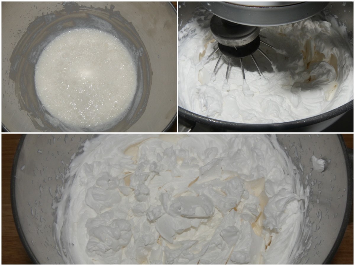 Lasciate raffreddare completamente i tuorli, poi montate la panna ben fredda di frigo con lo zucchero a velo.