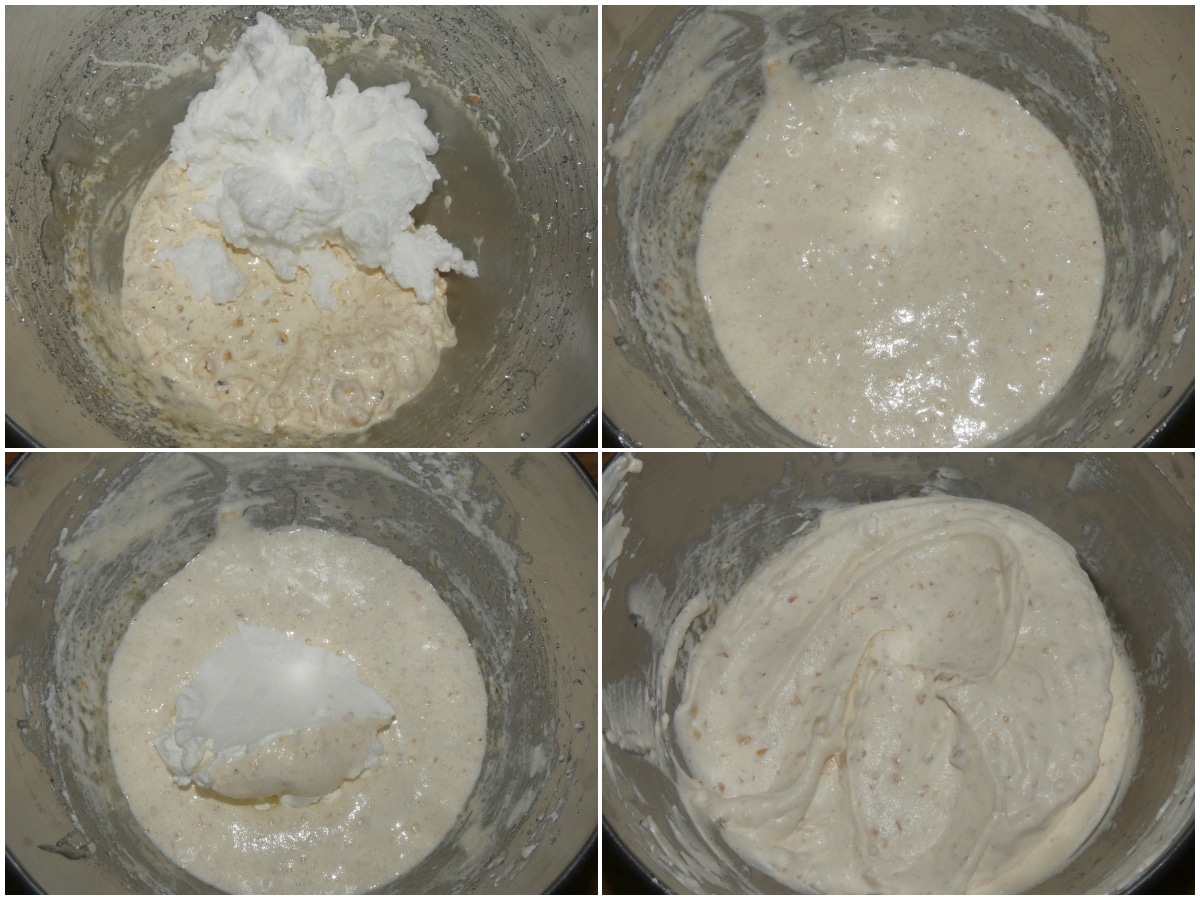 Infine incorporate panna e albumi, poco per volta, mescolando delicatamente con una spatola, con un movimento dal basso verso l'alto.