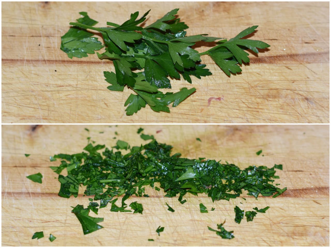 Innanzitutto mondate e tritate prezzemolo, cipolla e sedano.