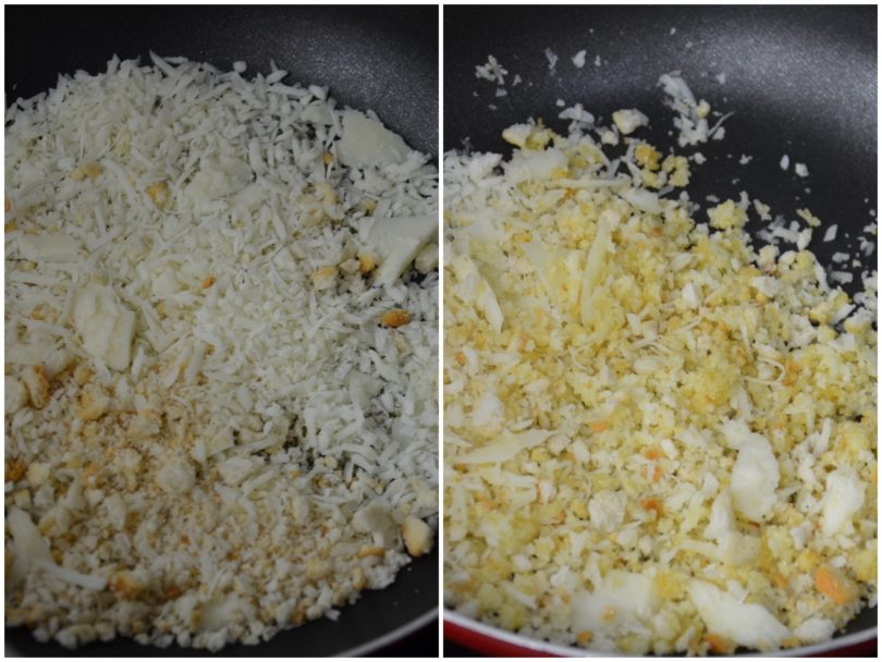 A parte, tostate la mollica di pane sbriciolata con un po' d'olio.