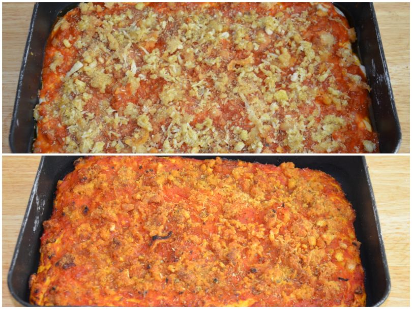 Aggiungete pangrattato e formaggio e condite, se volete, con un po' di origano aggiuntivo.