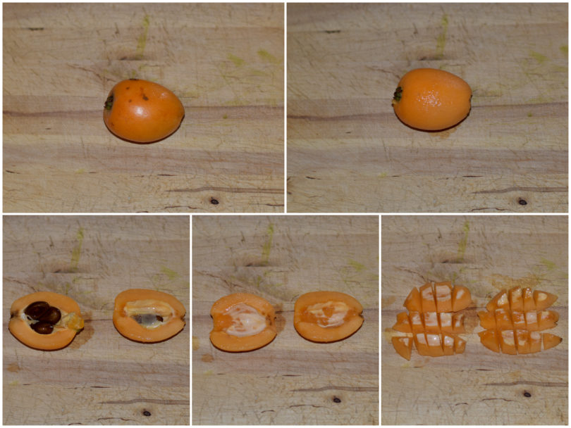 Innanzitutto mondate le nespole e tagliatele a dadini.