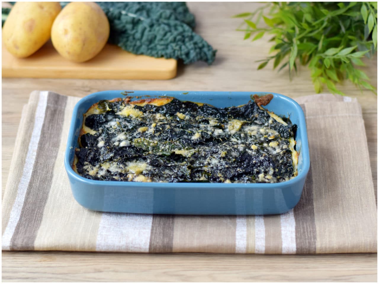 Lo sformato di cavolo nero è un primo piatto assolutamente delizioso che si presenza come se fosse una lasagna. Strati di cavolo nero e patate si alternano infatti tra di loro, resi ancora più golosi dalla besciamella... Il risultato, vi assicuro, è un piatto ricco e saporito, di una cremosità unica, decisamente da non perdere!