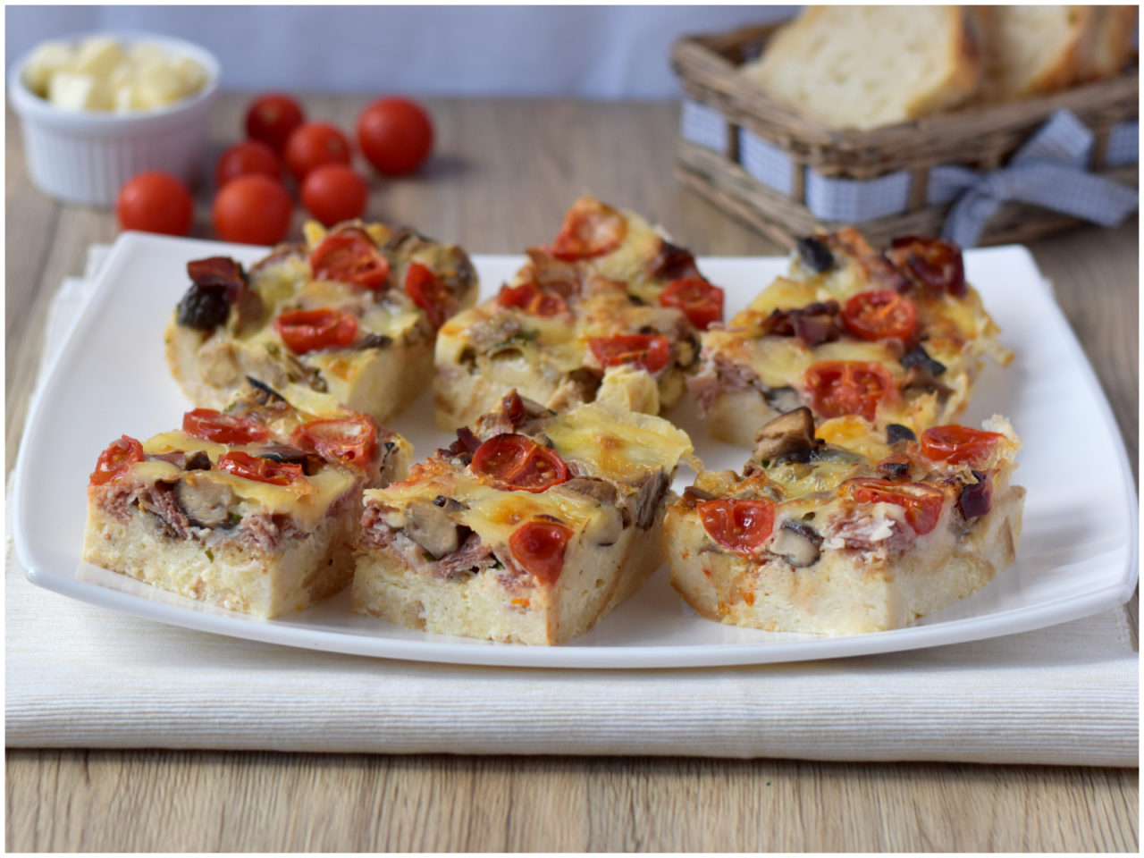 Lo sformato di pane ai funghi è una fantastica idea riciclo: facile, veloce e buonissima, si presenta come se fosse una sorta di pizza rustica. Derivata da un'antica tradizione contadina, la ricetta (che ho visto qui) prevedeva in origine solo pane, cipolla e pomodori. Ai giorni nostri, naturalmente, potete personalizzarla secondo il vostro gusto: potete decidere se cambiare salume o anche ometterlo, se usare o meno i pomodorini, quale formaggio usare e via dicendo. Sono sicura che se la proverete ve ne innamorerete e la rifarete in tante varianti, fatemi sapere quali sono le vostre preferite ;)