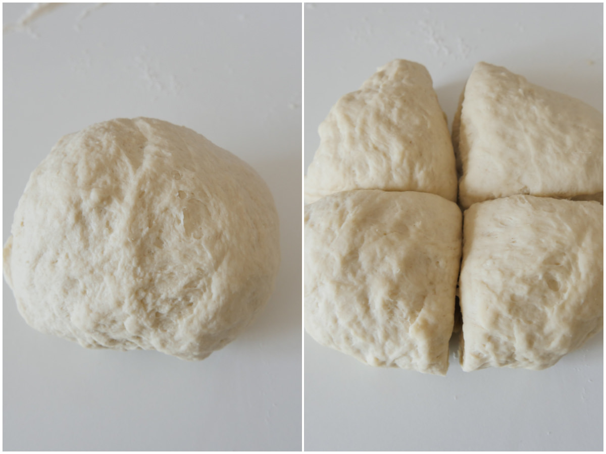 Una volta passato il tempo di riposo, dividete il panetto in 4 parti uguali.