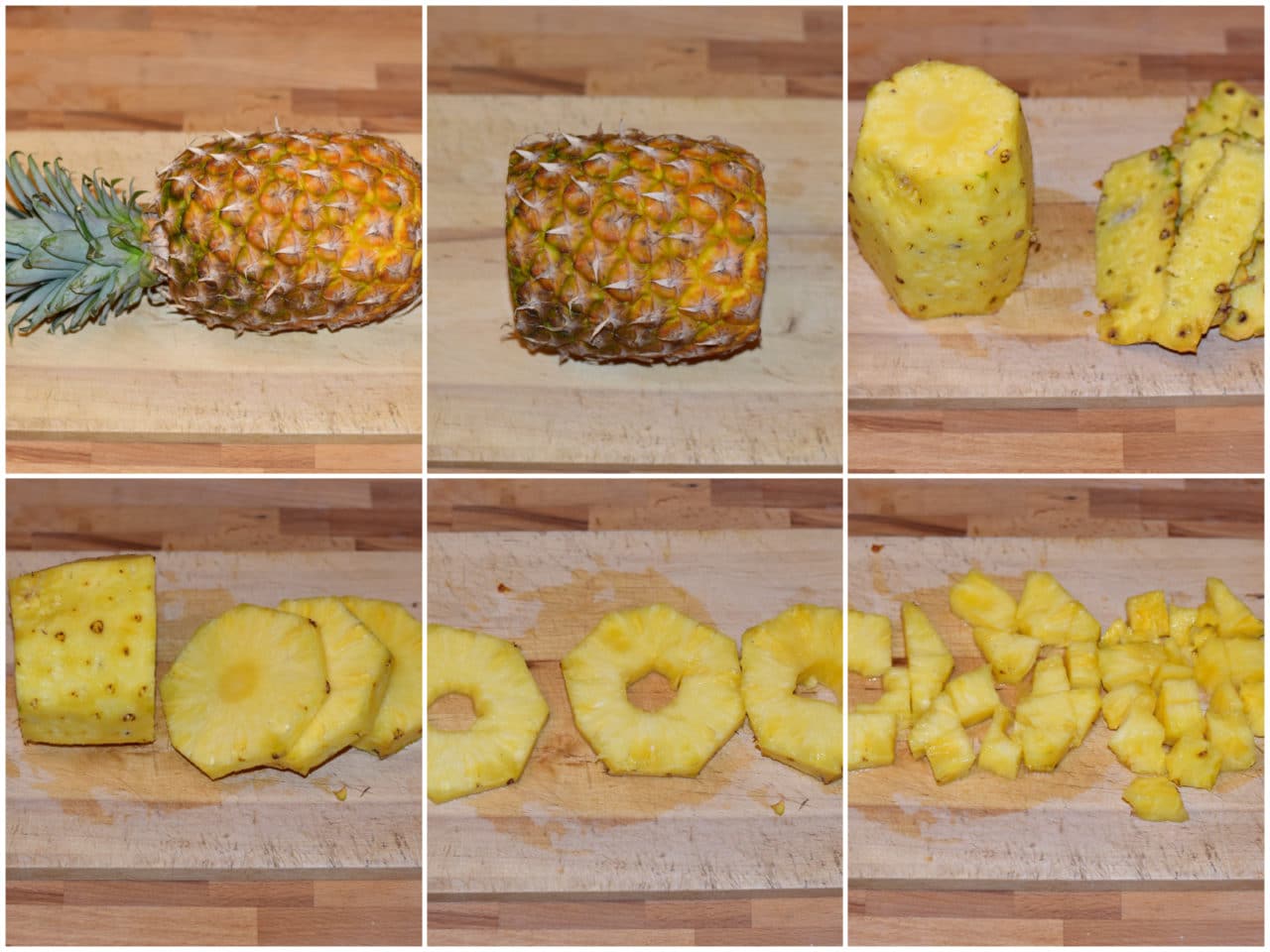 Nel frattempo mondate l'ananas (qui la guida per farlo al meglio), ricavate la polpa e tagliatela a pezzetti.