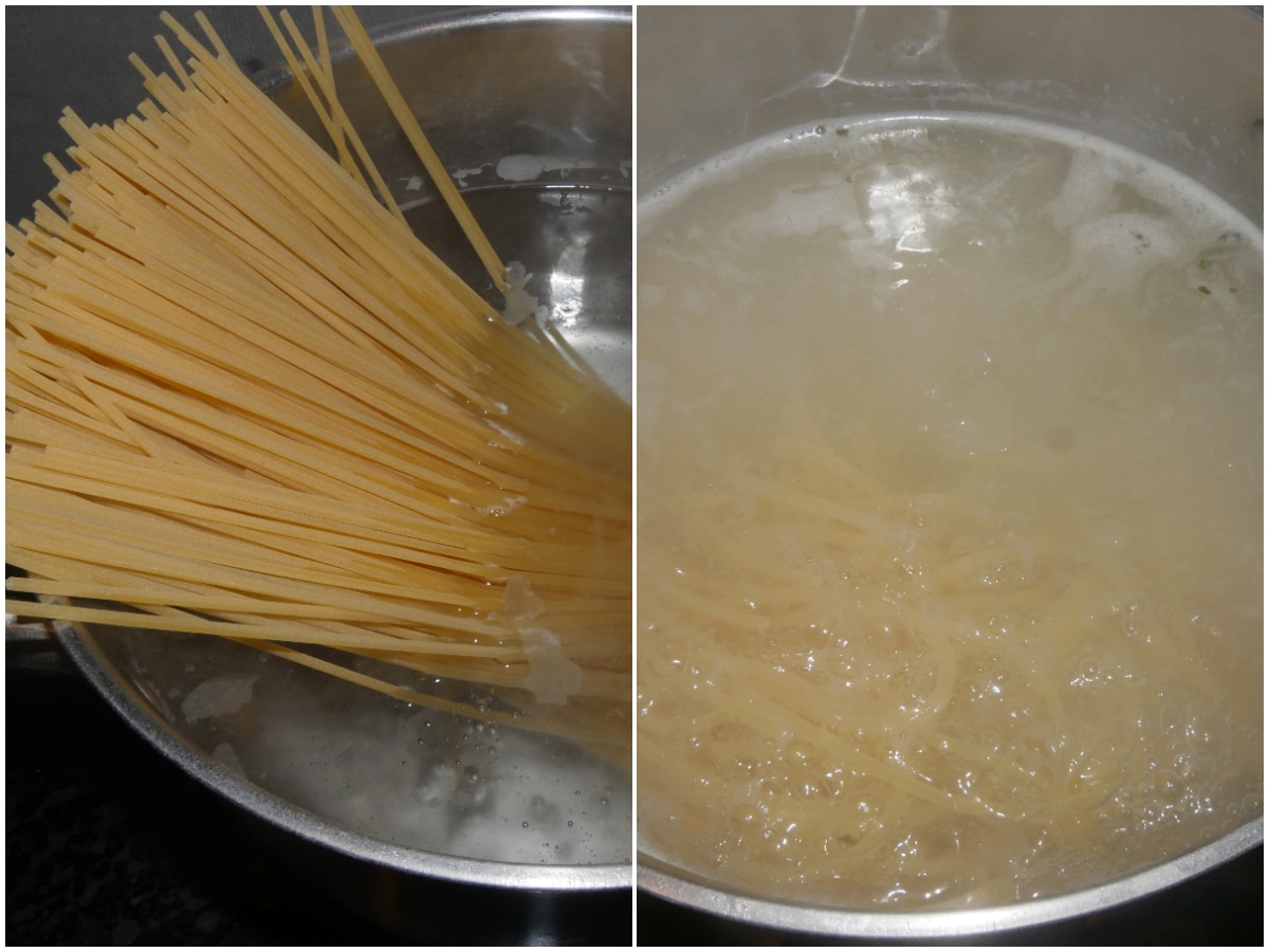 Cuocete la pasta in abbondante acqua bollente leggermente salata.