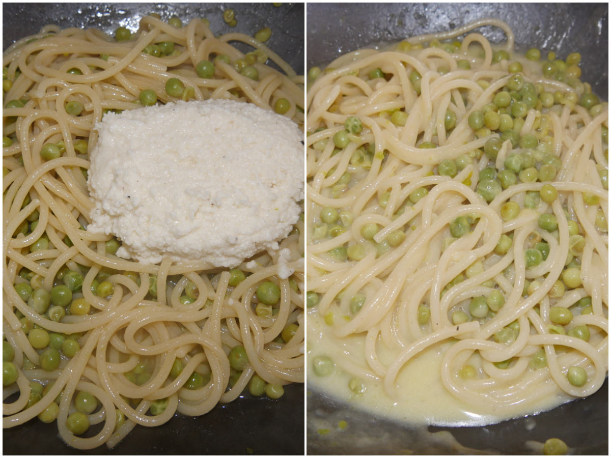 Come fare gli spaghetti cacio pepe e piselli