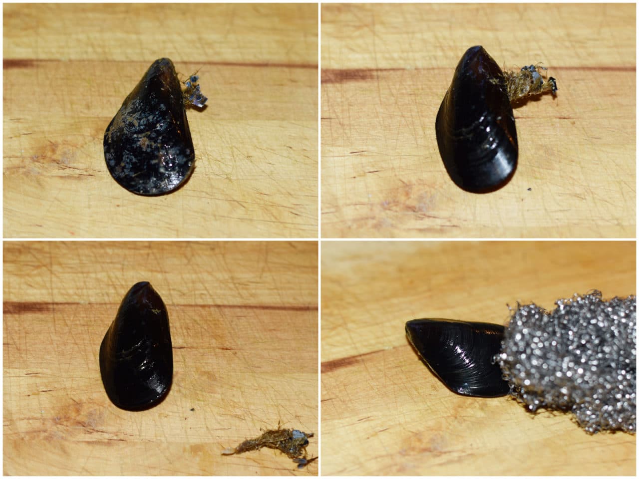 Innanzitutto procedete con la pulizia delle cozze (qui la guida per farlo al meglio), eliminando la barba con un raschietto e le incrostazioni con una spugnetta di acciaio e lasciandole poi spurgare in acqua fredda per circa 30 minuti, cambiando più volte l'acqua finché non risulterà limpida, in modo da eliminare tutta la sabbia.