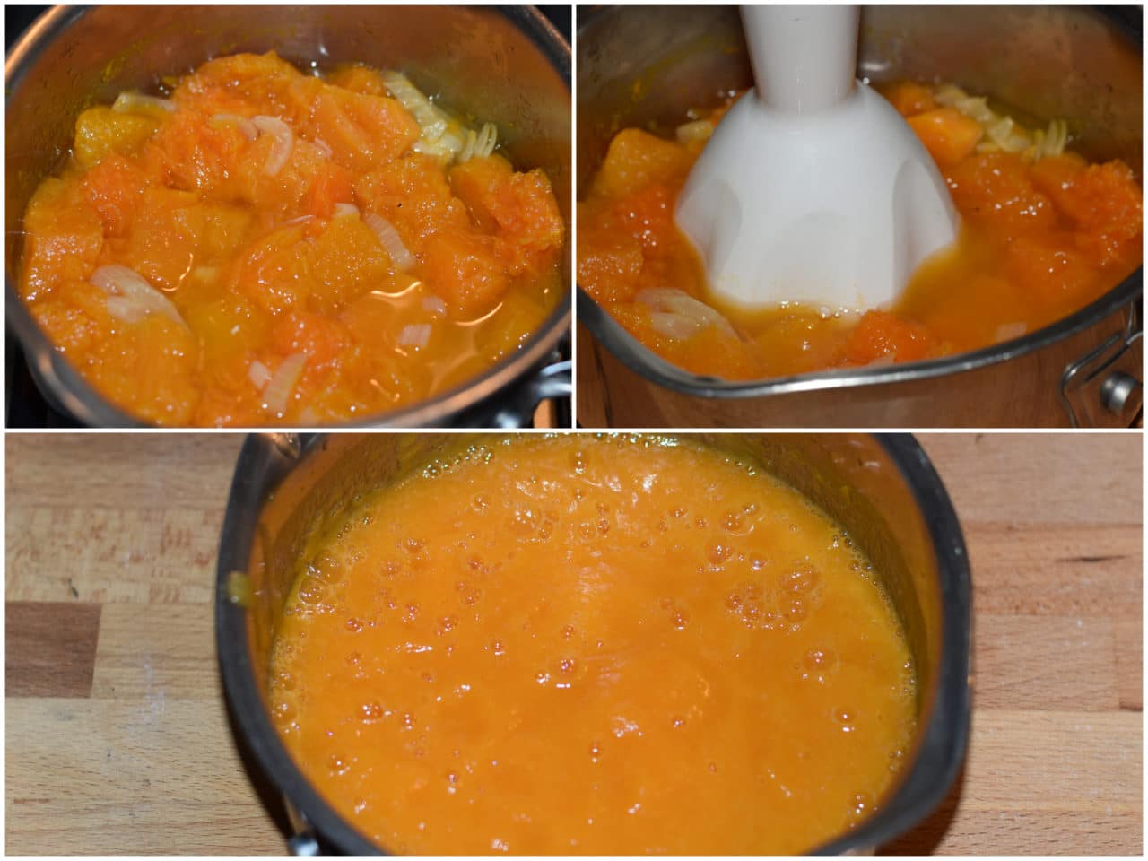 Quando sarà morbida, condite la zucca con sale e olio e frullatela con un minipimer.