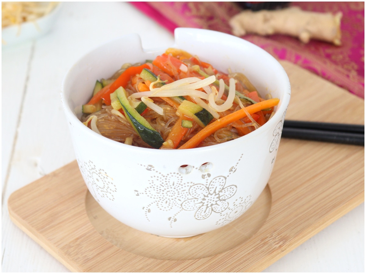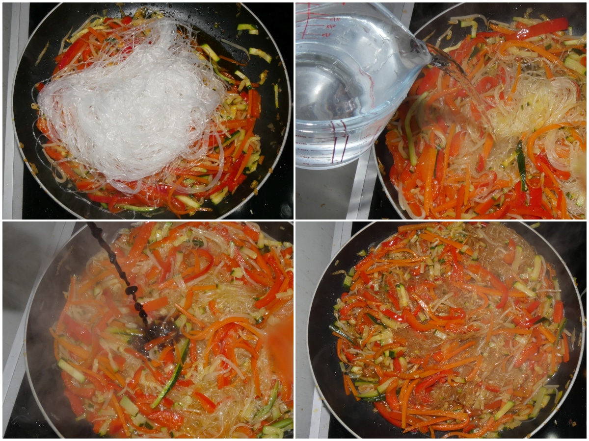 Gli spaghetti di soia sono un classico della cucina orientale, ma non tutti sanno come prepararli al meglio. Questa, dunque, non vuole essere una ricetta per preparare materialmente gli spaghetti (lungi da me, sarebbe davvero troppo complicato), ma piuttosto per darvi un esempio di come utilizzarli in cucina. Il procedimento è piuttosto semplice, gli spaghetti vengono di solito conditi con un misto di verdure. Talvolta si vede l'aggiunta di altri elementi, come gamberetti o uovo.