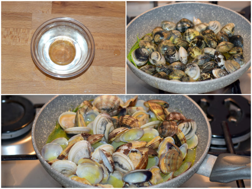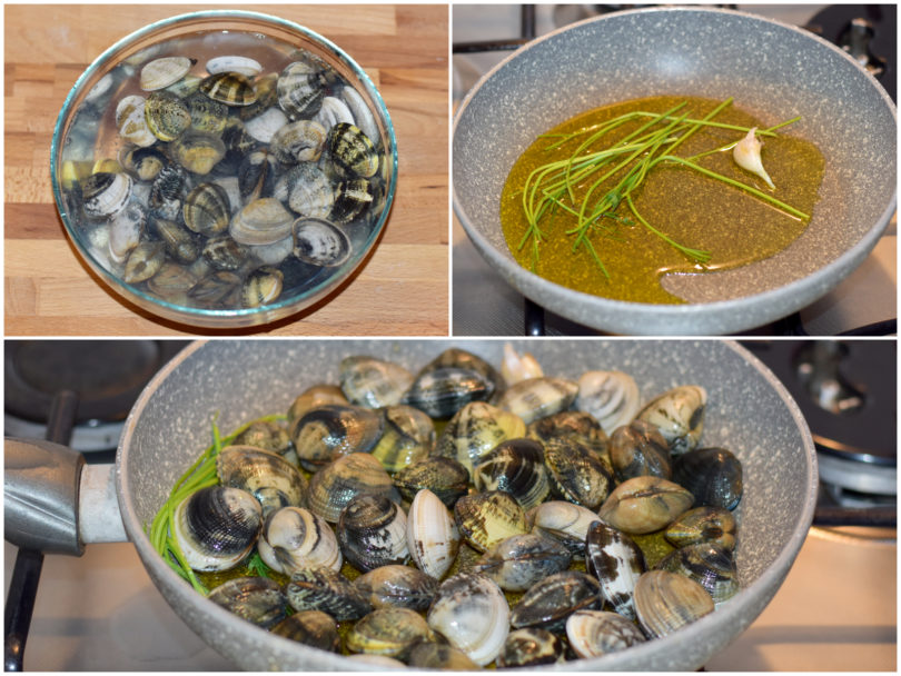 Innanzitutto lasciate spurgare le vongole in acqua salata (qui la guida per farlo al meglio).