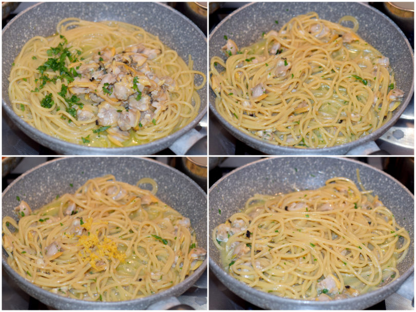 Quando saranno cotti potete aggiungete vongole, prezzemolo e limone.